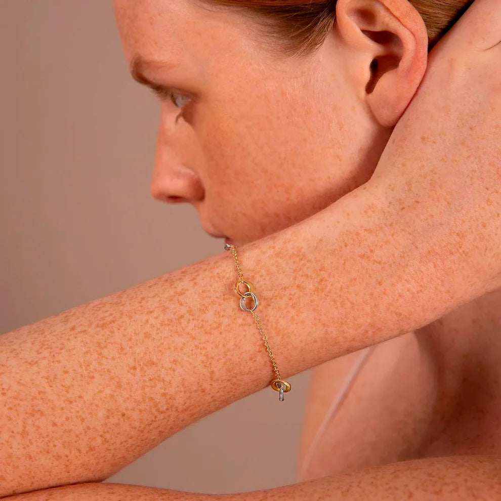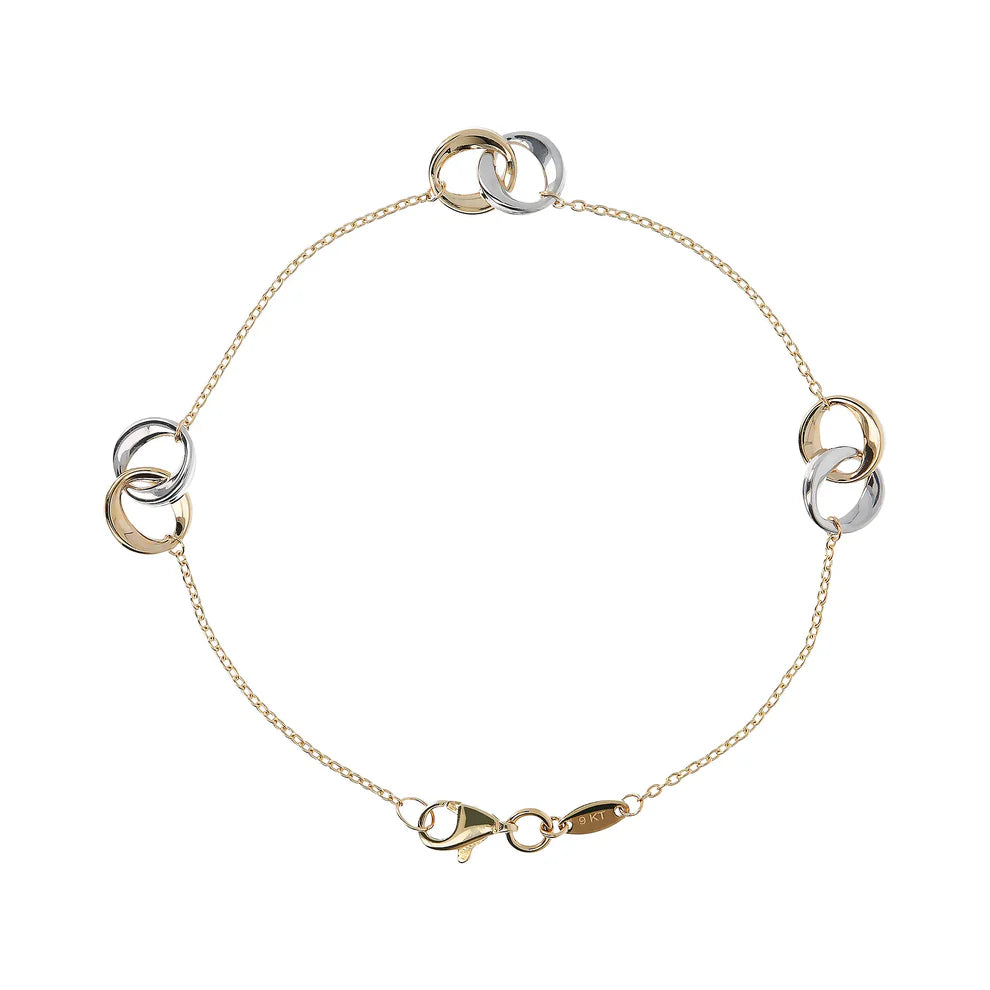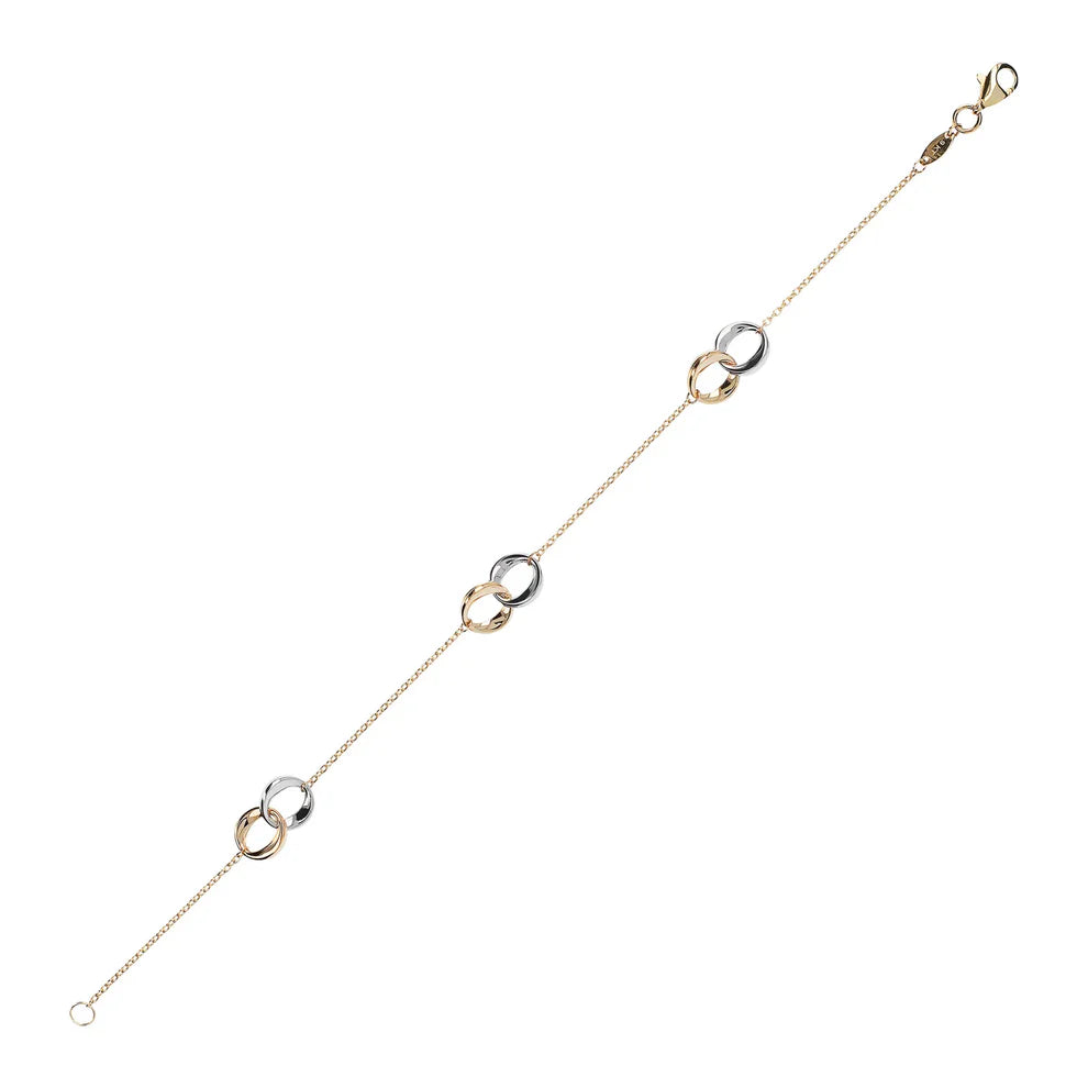 9ct Gold Bicolor Forzatina Chain Bracelet with Double Intertwined Rings