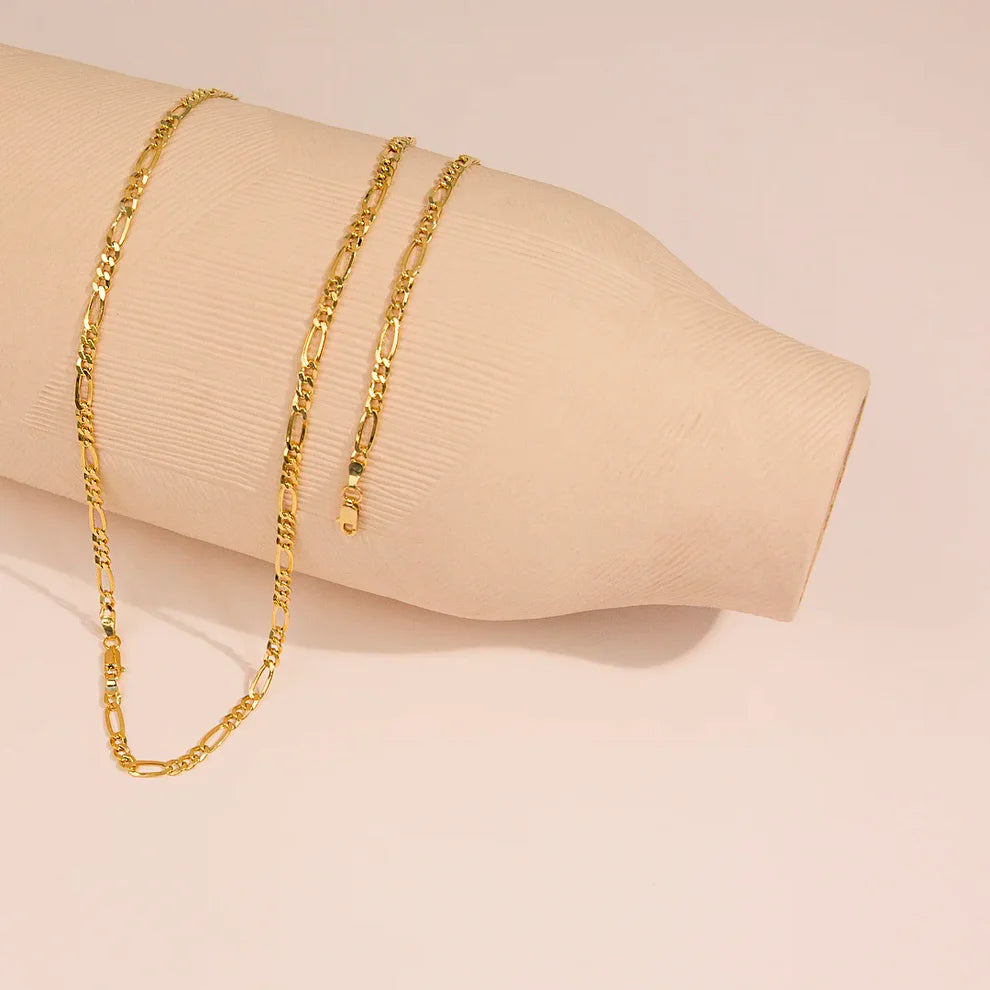 9ct Yellow Gold Handmade 3mm Long Short Links Figaro Chain
