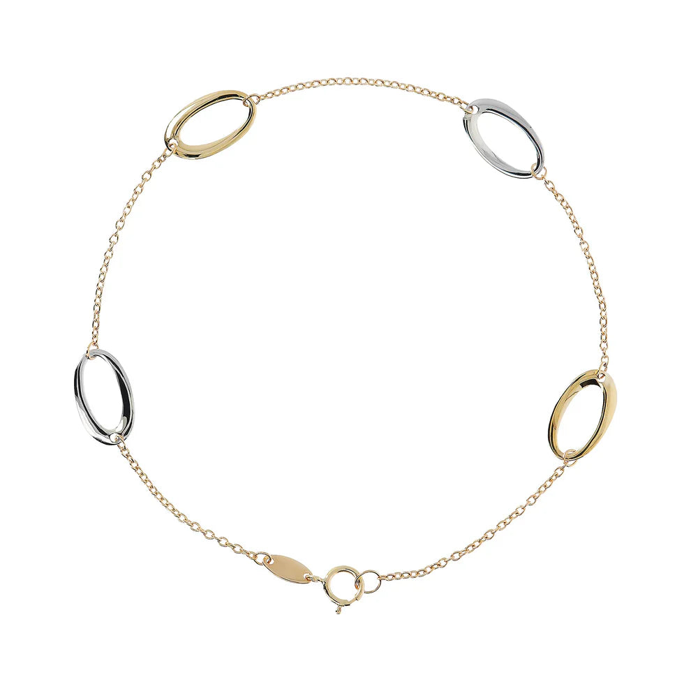 9ct Gold Double Circle Two-Tone Chain Bracelet