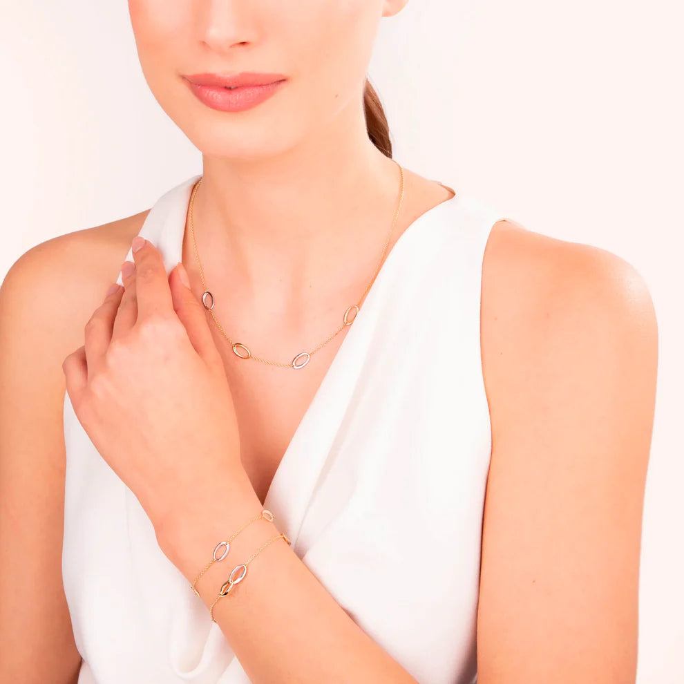9ct Gold Bicolor Forzatina Chain Bracelet with Double Intertwined Rings
