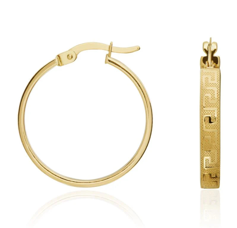 9ct Yellow Gold Round Greek Hoops