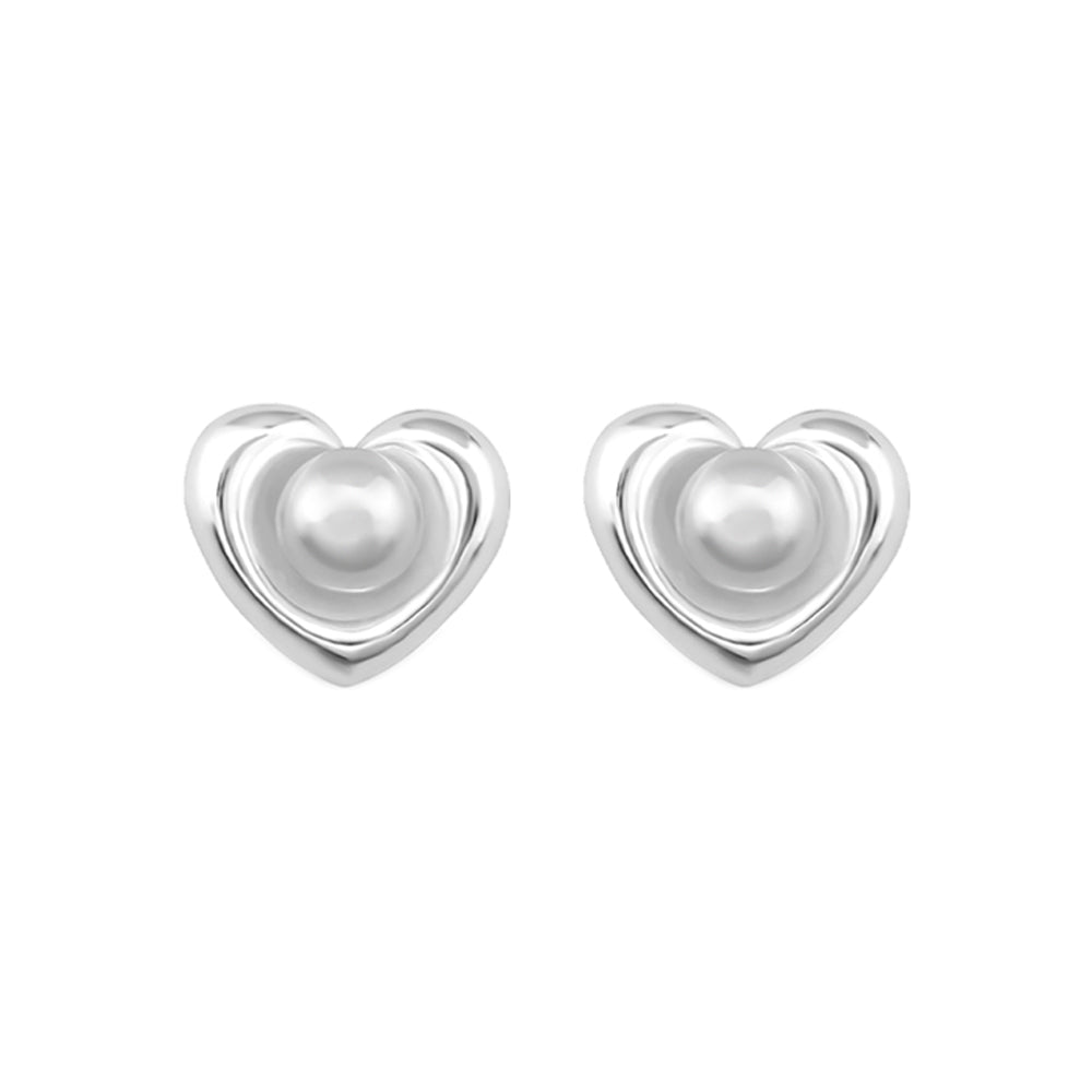 Sterling Silver Heart Pearl Studs