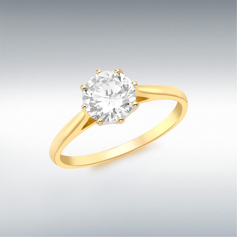 9ct Yellow Gold Round Solitaire Cubic Zirconia Ring