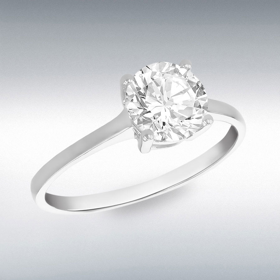 9ct White Gold 7mm CZ Solitatire Ring