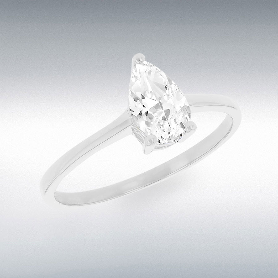 9ct White Gold Pear Cubic Zirconia Ring