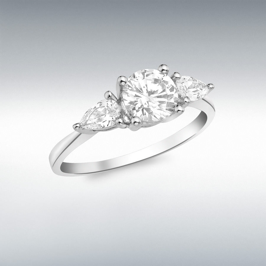 9ct White Gold Round and Pear Cubic Zirconia Ring