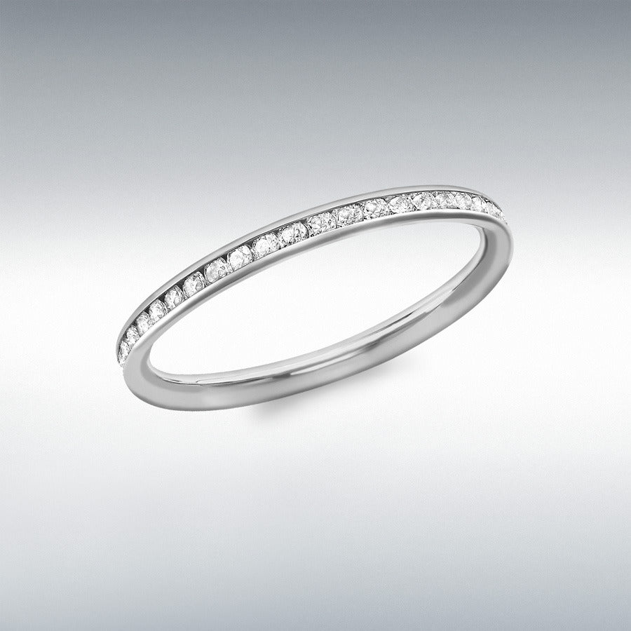 9ct White Gold CZ 2mm Band Eternity Ring