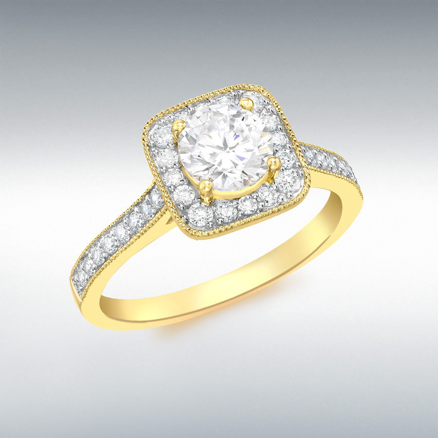 9ct Yellow Gold Square Cubic Zirconia Cluster Ring
