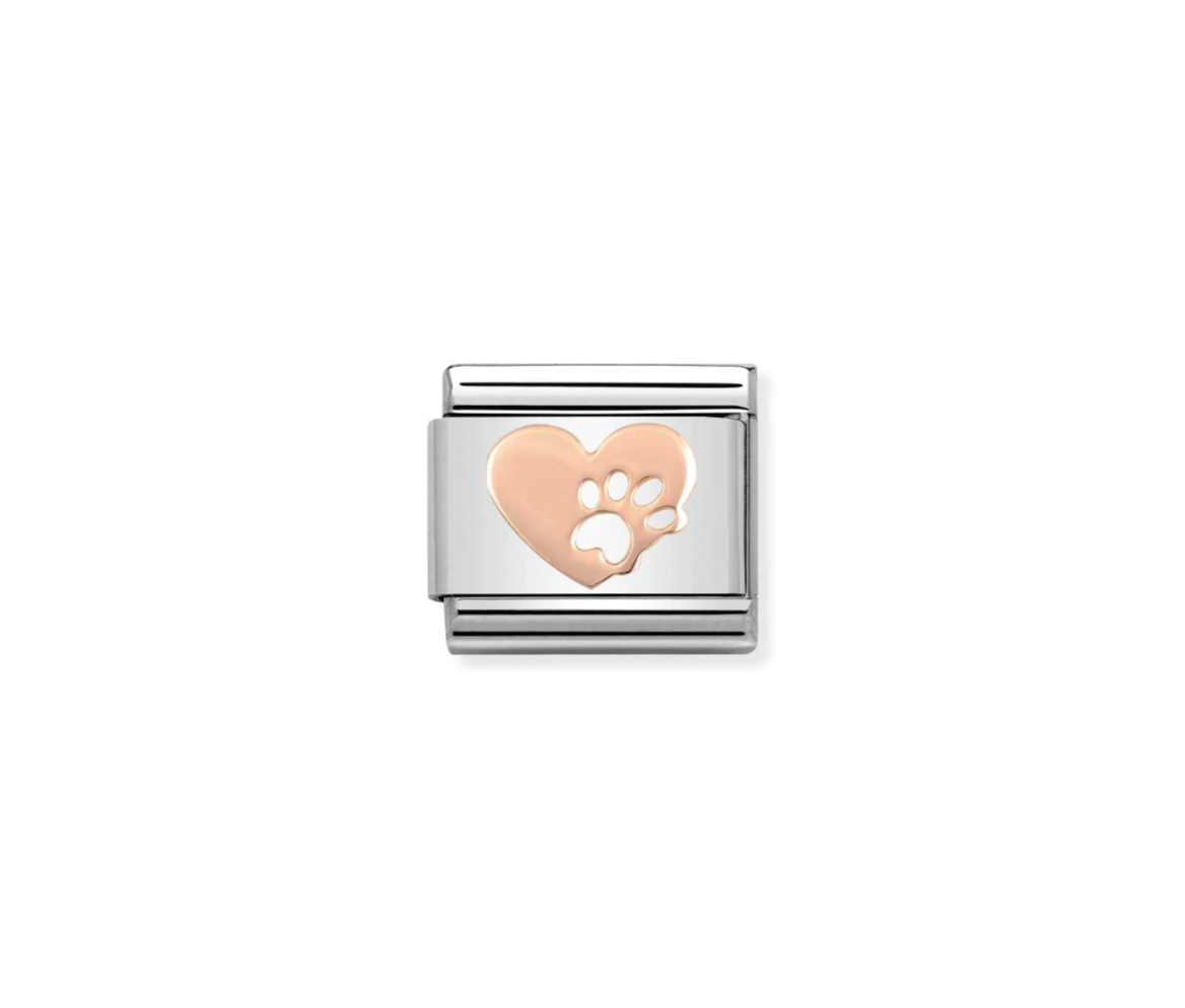 Composable Link, Rose Gold Heart with Paw