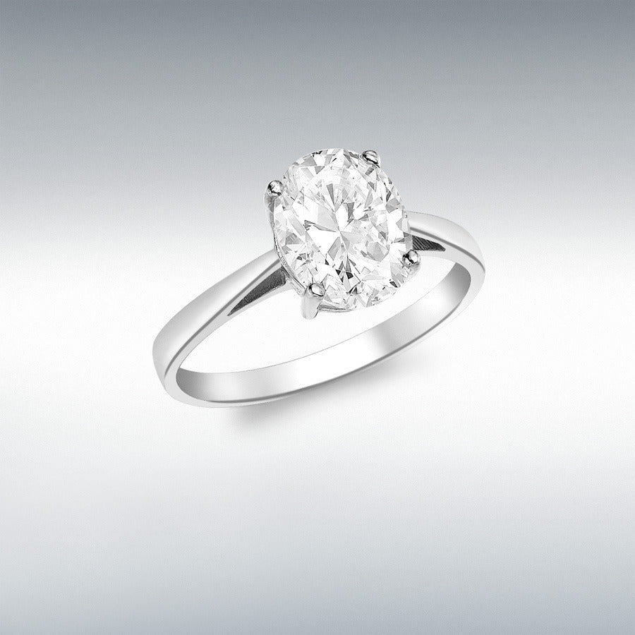 9ct White Gold Oval Cubic Zirconia Solitaire Ring