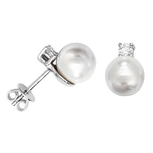 SILVER CZ & FRESHWATER PEARLS STUD EARRINGS
