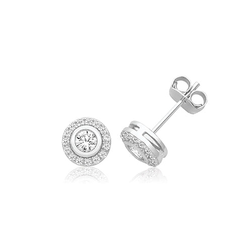 Sterling Silver CZ Halo Stud Earrings