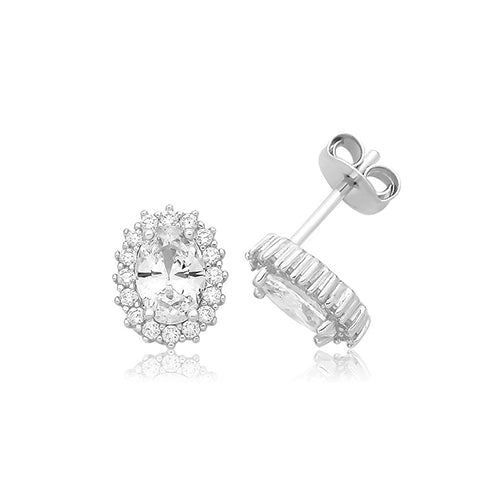 Sterling Silver Oval CZ Halo Stud Earrings