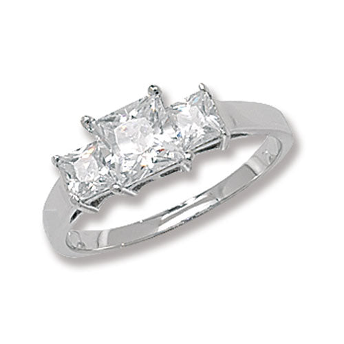 Sterling Silver Three-Stone Princess-Cut CZ Ring