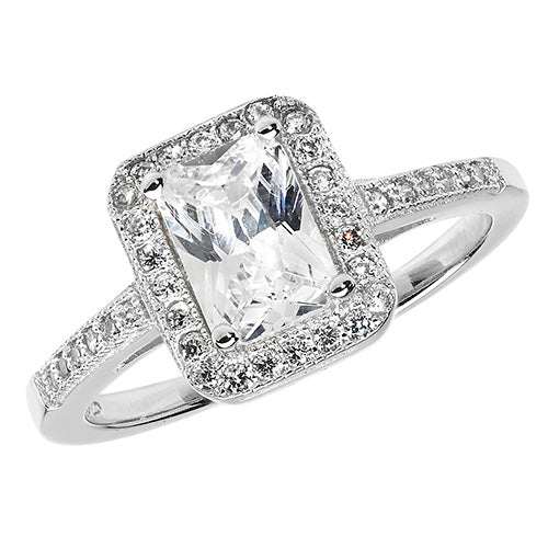 Sterling Silver Emerald-Cut CZ Halo Ring