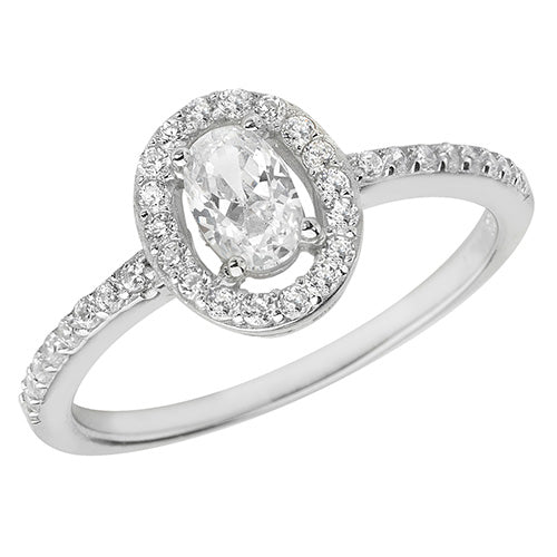 Sterling Silver Oval CZ Halo Ring