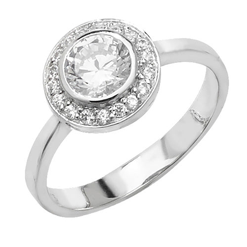 Sterling Silver Round CZ Halo Ring