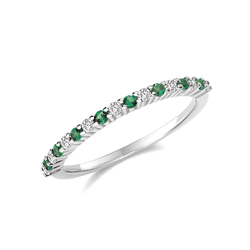 Sterling Silver CZ & Emerald Band