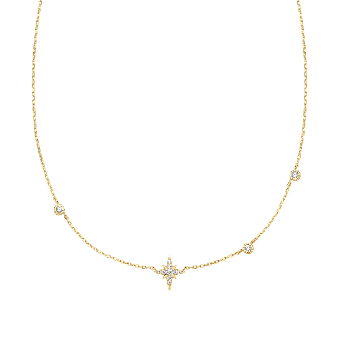 Gold Eight-Pointed Star Cubic Zirconia Station Necklace
