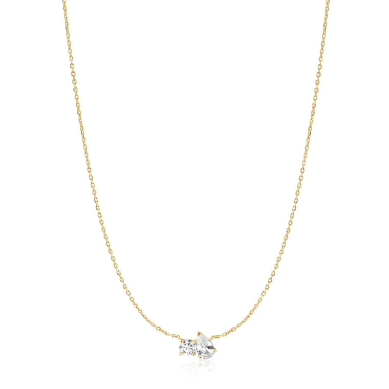 Forzatina Chain Necklace with Double Oval Pendant in Two-Tone 375 Gold
