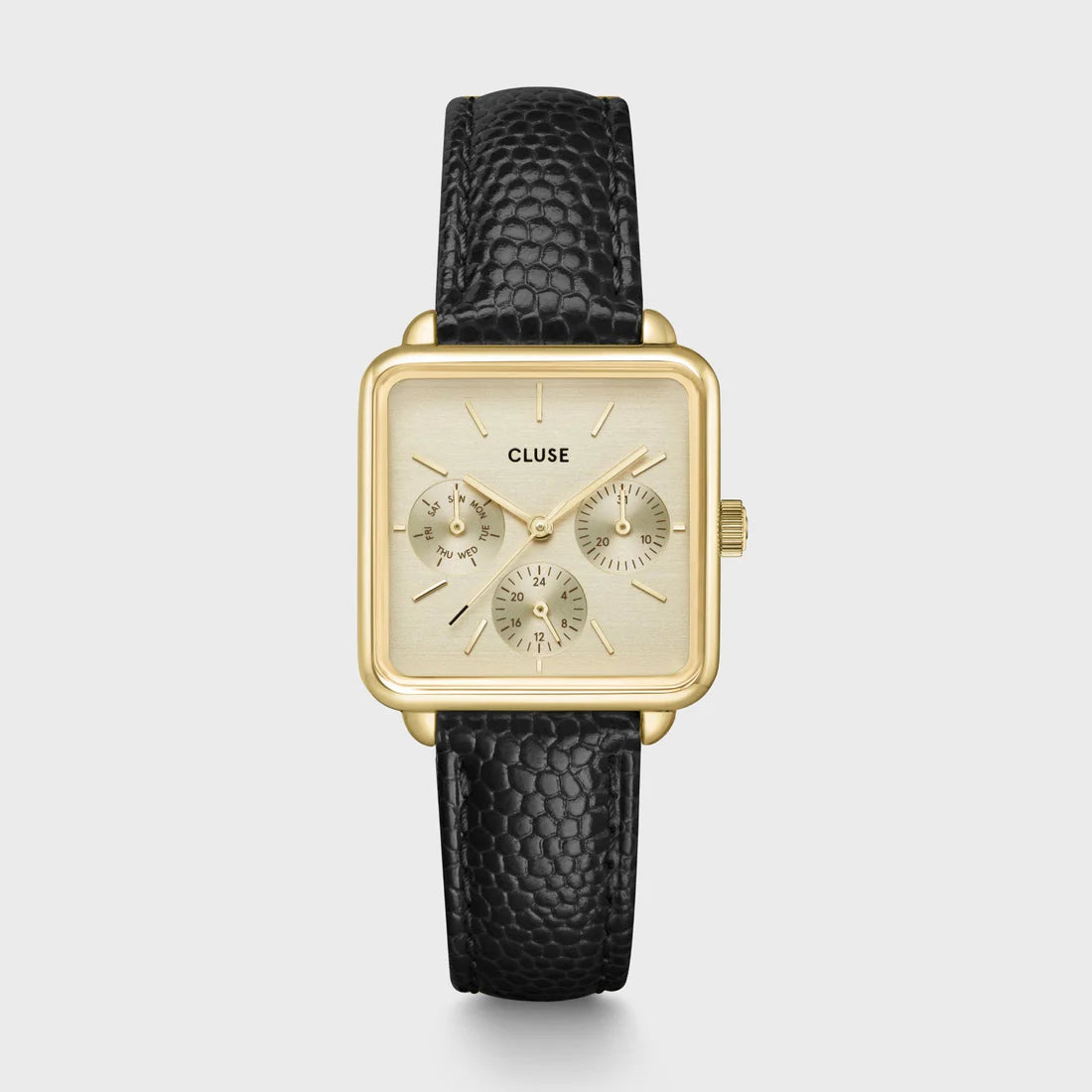 La Tétragone Multifunction Watch Leather, Black Lizard, Gold Colour
