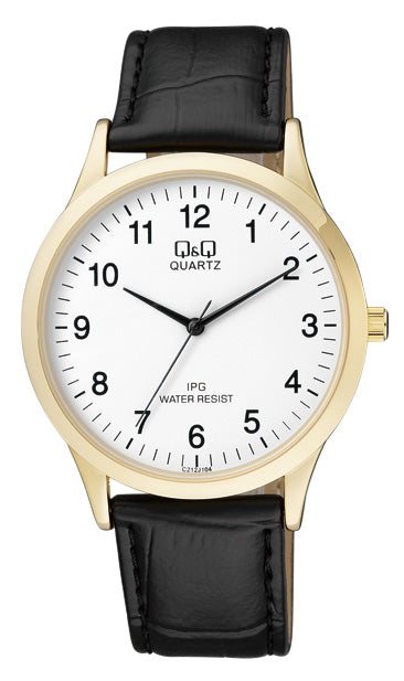 Q&Q Gents Gold Case Watch with Black Leather Strap