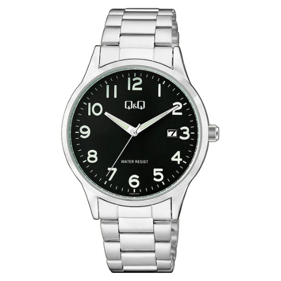 Q&Q Gents Classic Chrome Case Watch with Stainless Steel Bracelet