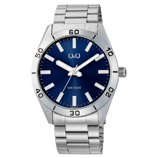 Q&Q Gents Classic Chrome case and Navy Leather Strap