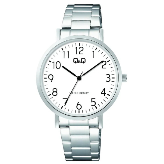 Q&Q Gents Black Strap, White Face, Black Dial Analogue Watch